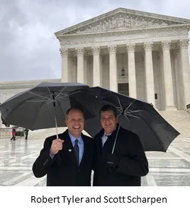 Commenting right after leaving the Supreme Court hearing with our client, Scott Scharpen, Tyler & Bursch attorney, Robert Tyler was optimistic, saying, “Based on the arguments, it certainly appears that victory is awaiting!”