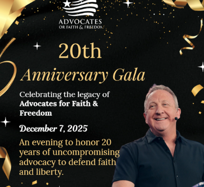As we enter the Thanksgiving season, our hearts are full–and resolute. This year marks a defining moment not only in our ongoing legal work, but in the very life of our ministry. Advocates for Faith & Freedom is celebrating 20 years of defending religious liberty, championing truth, and standing unapologetically in the public square for the for the God-given rights of His people!